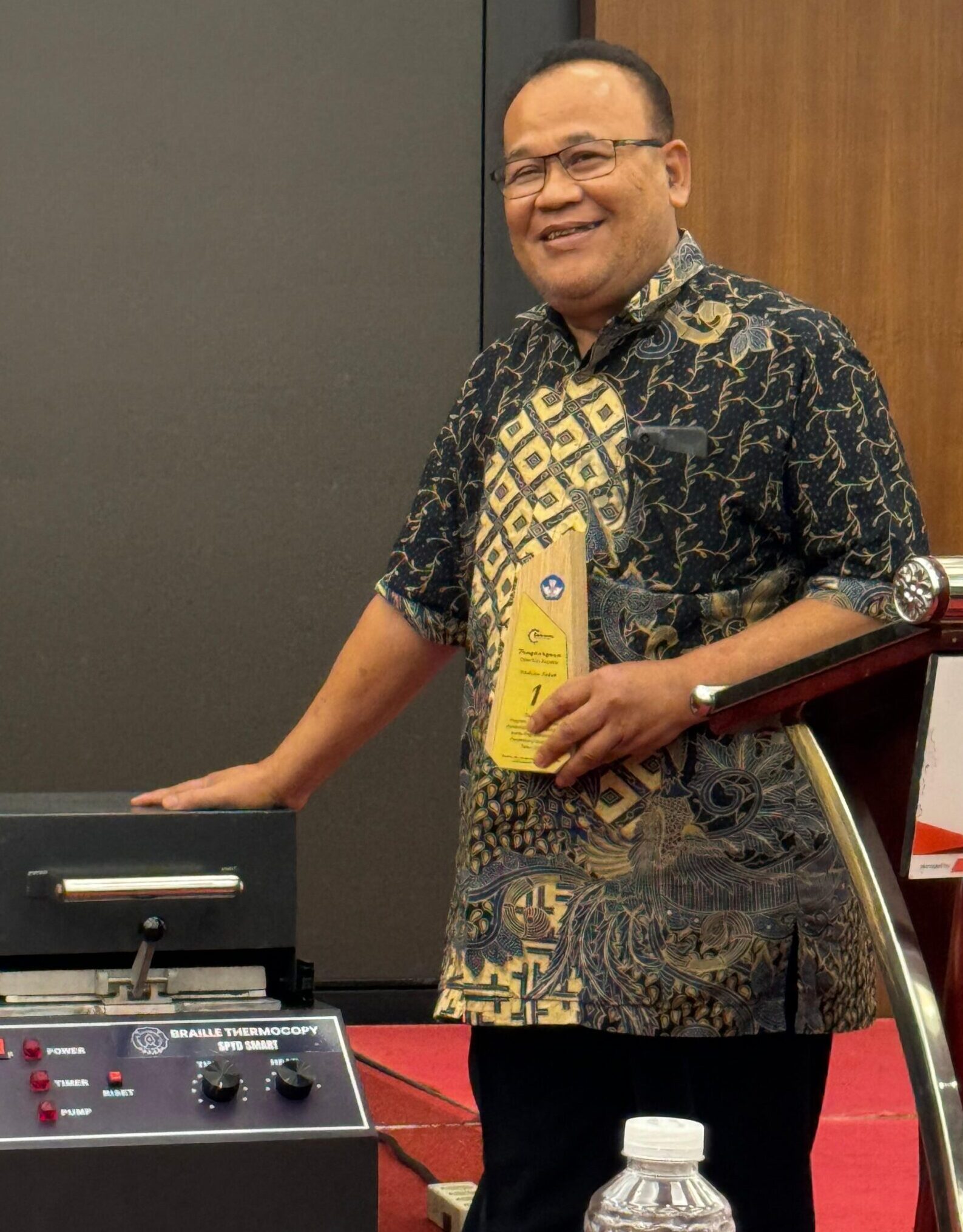 Pusat Studi Difabilitas (PSD) Lembaga Penelitian dan Pengabdian Masyarakat Universitas Sebelas Maret (LPPM UNS) berbangga atas prestasi gemilang yang ditorehkan oleh tiga orang peer group. Ketiganya berhasil menciptakan inovasi mesin duplikator huruf Braille yang dinamai “SpydSmart”, dan meraih penghargaan dari Direktorat Pembelajaran dan Kemahasiswaan (Belmawa) Kementerian Pendidikan tinggi dalam Hibah Teknologi Bantu Tahun 2024. Penghargaan ini menjadi bukti nyata dedikasi UNS dalam mengembangkan teknologi asistif yang memperkuat akses pendidikan bagi penyandang disabilitas.