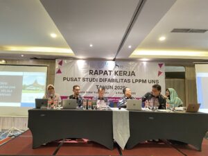 Surakarta, 4 Februari 2025 – Pusat Studi Disabilitas (PSD) Lembaga Penelitian dan Pengabdian kepada Masyarakat (LPPM) Universitas Sebelas Maret menyelenggarakan Rapat Kerja Tahunan (Raker) PSD LPPM UNS pada Selasa, 4 Februari 2025 di Solia Hotel Yosodipuro, Solo. Kegiatan ini diadakan sebagai forum evaluasi program tahun sebelumnya dan penyusunan arah kebijakan, strategi, serta rencana pengembangan program PSD untuk tahun berjalan.