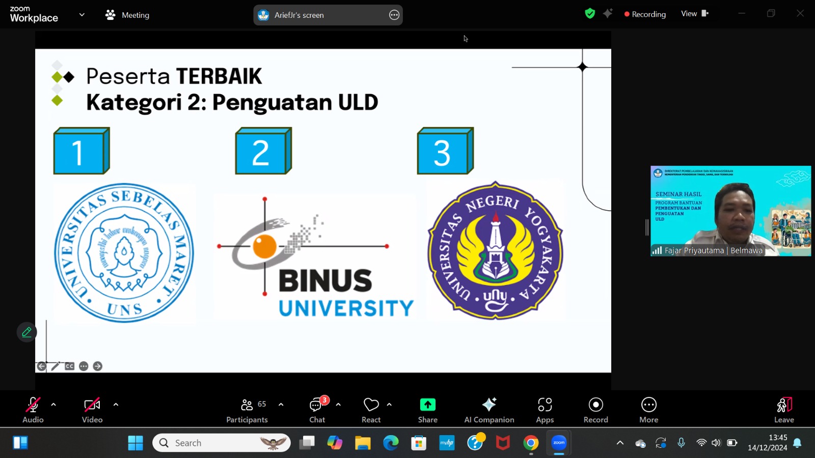 Pusat Studi Difabilitas (PSD) LPPM Universitas Sebelas Maret (UNS) kembali mengukir prestasi yang membanggakan di tingkat nasional. Pada 14 Desember 2024, PSD LPPM UNS resmi diumumkan sebagai Juara 1 Penguatan Unit Layanan Disabilitas Terbaik dalam ajang Hibah Unit Layanan Disabilitas Tahun 2024 yang diselenggarakan oleh Direktorat Pembelajaran dan Kemahasiswaan (Belmawa) Diktiristek. Penghargaan bergengsi ini diberikan secara daring dan diikuti oleh perguruan tinggi dari seluruh Indonesia.