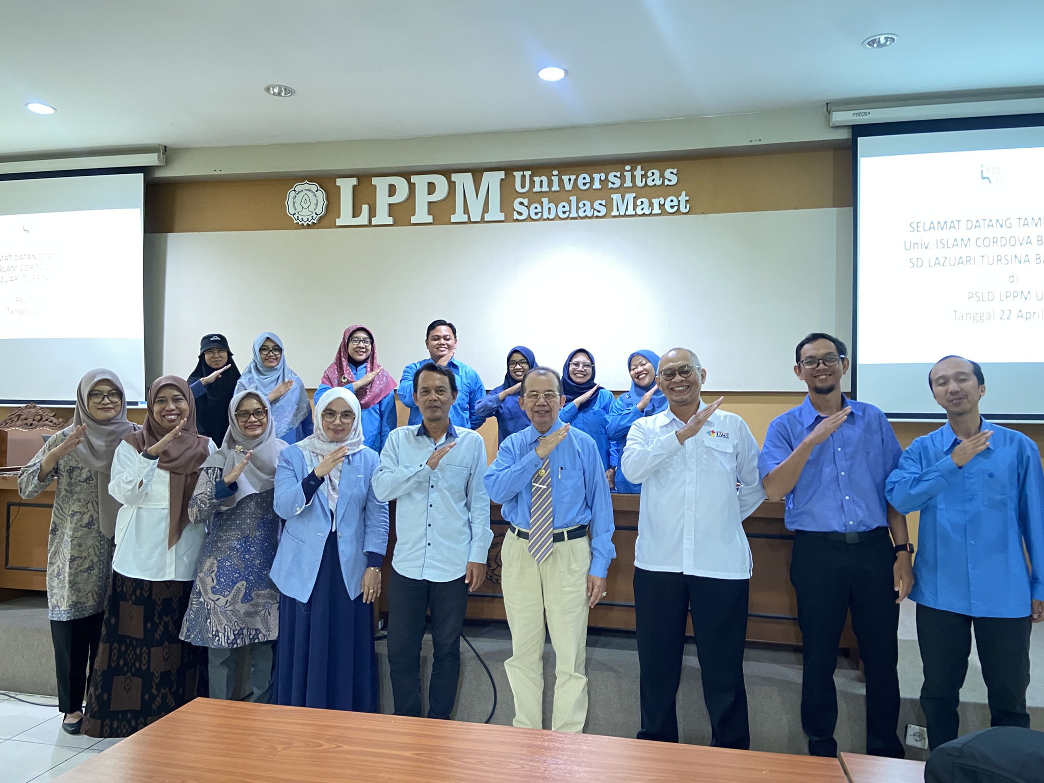 Surakarta, 22 April 2025 – Pusat Studi Difabilitas (PSD) Lembaga Penelitian dan Pengabdian Masyarakat (LPPM) Universitas Sebelas Maret menerima kunjungan dari tiga institusi sekaligus, yaitu SD Lazuardi Tursina, Universitas Muhammadiyah Surakarta (UMS), dan Universitas Islam Cordoba Banyuwangi pada 22 April 2025. Kunjungan ini bertujuan untuk melakukan benchmarking dan studi tiru terkait pengembangan layanan, pendampingan, dan kebijakan ramah disabilitas di lingkungan pendidikan.